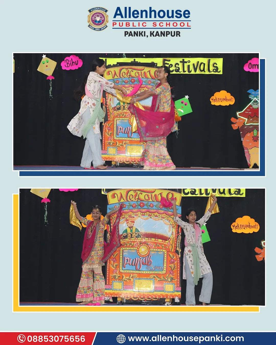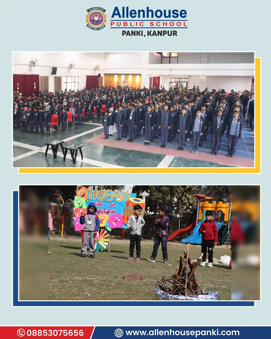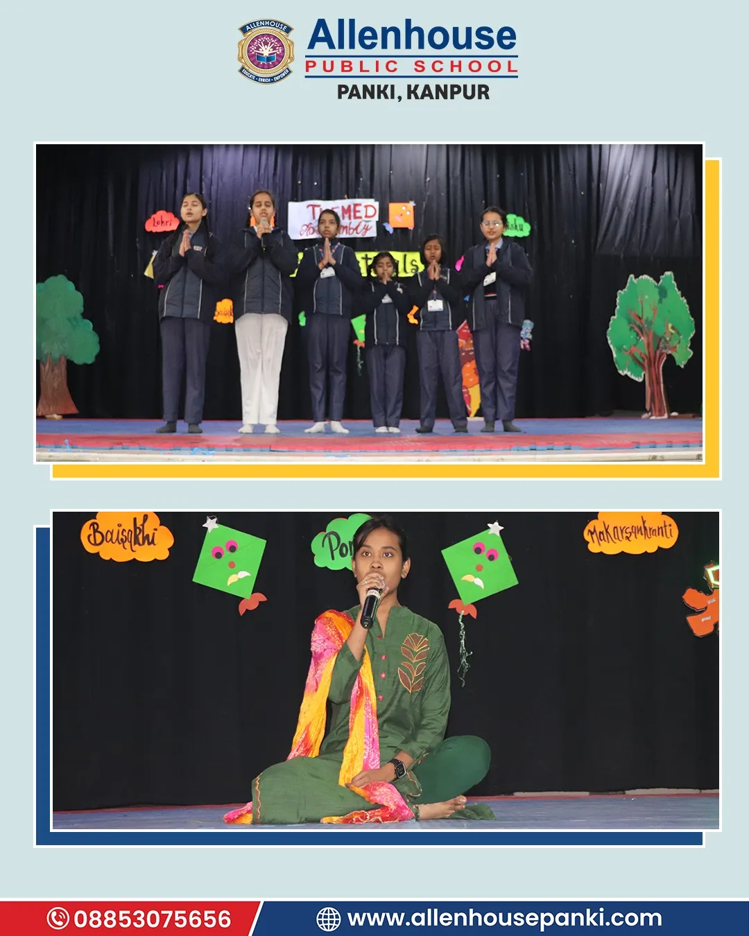 At Allenhouse Public School, Panki Lohri and Makar Sankranti festival was celebrated with zeal and wholehearted participation. The prayer, thought, and vocabulary related to the festival wove a beautiful thread of the celebration. The warmth of the gala was further enriched with hues of special dance and classical song presentation. The significance of the day was explained by the Principal, Dr. Harpreet Kaur, whose some cherished and inspiring words made the celebration even brighter.