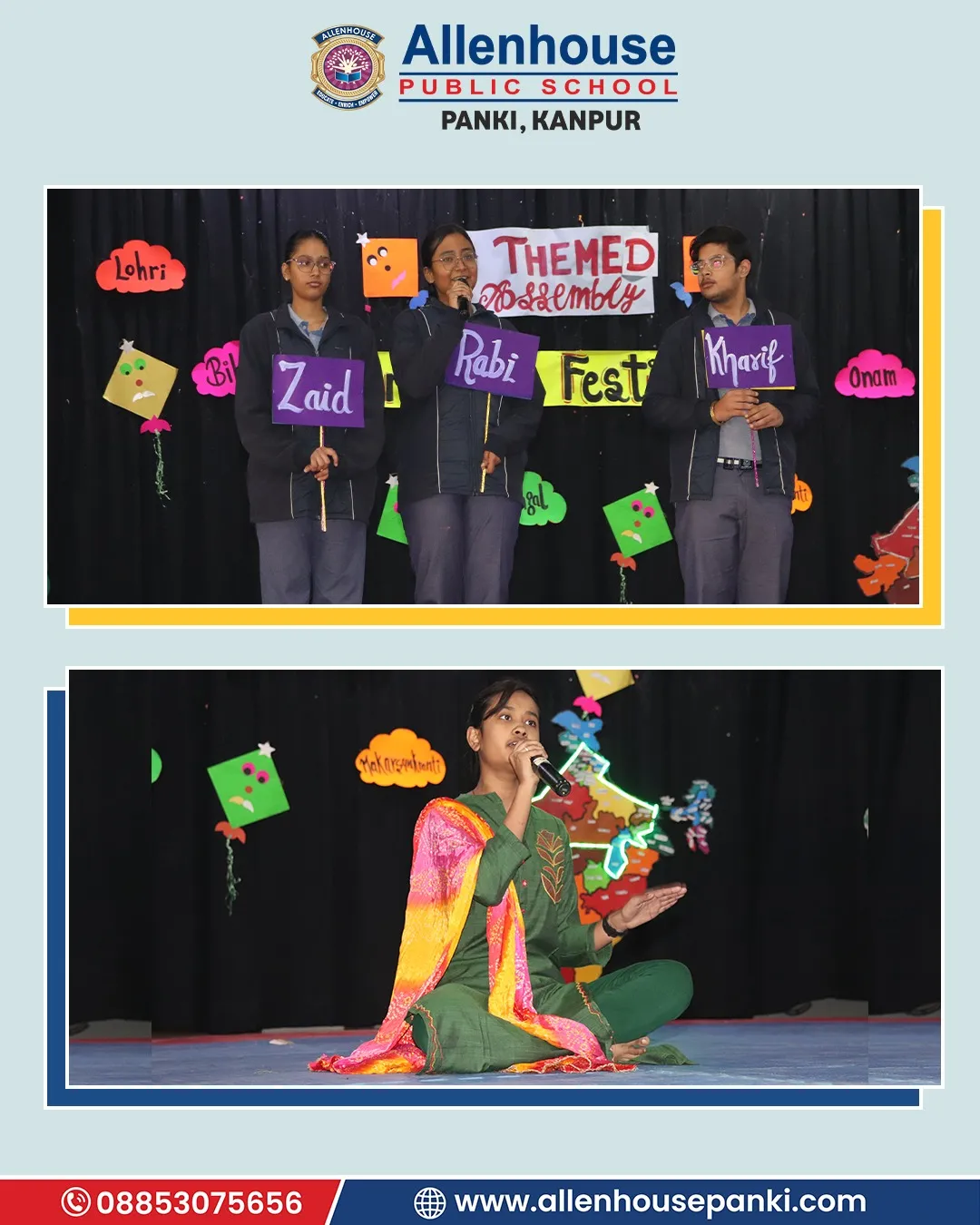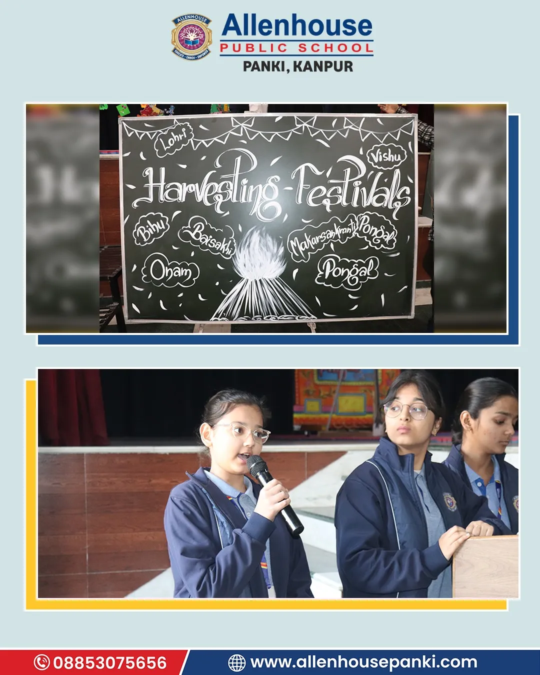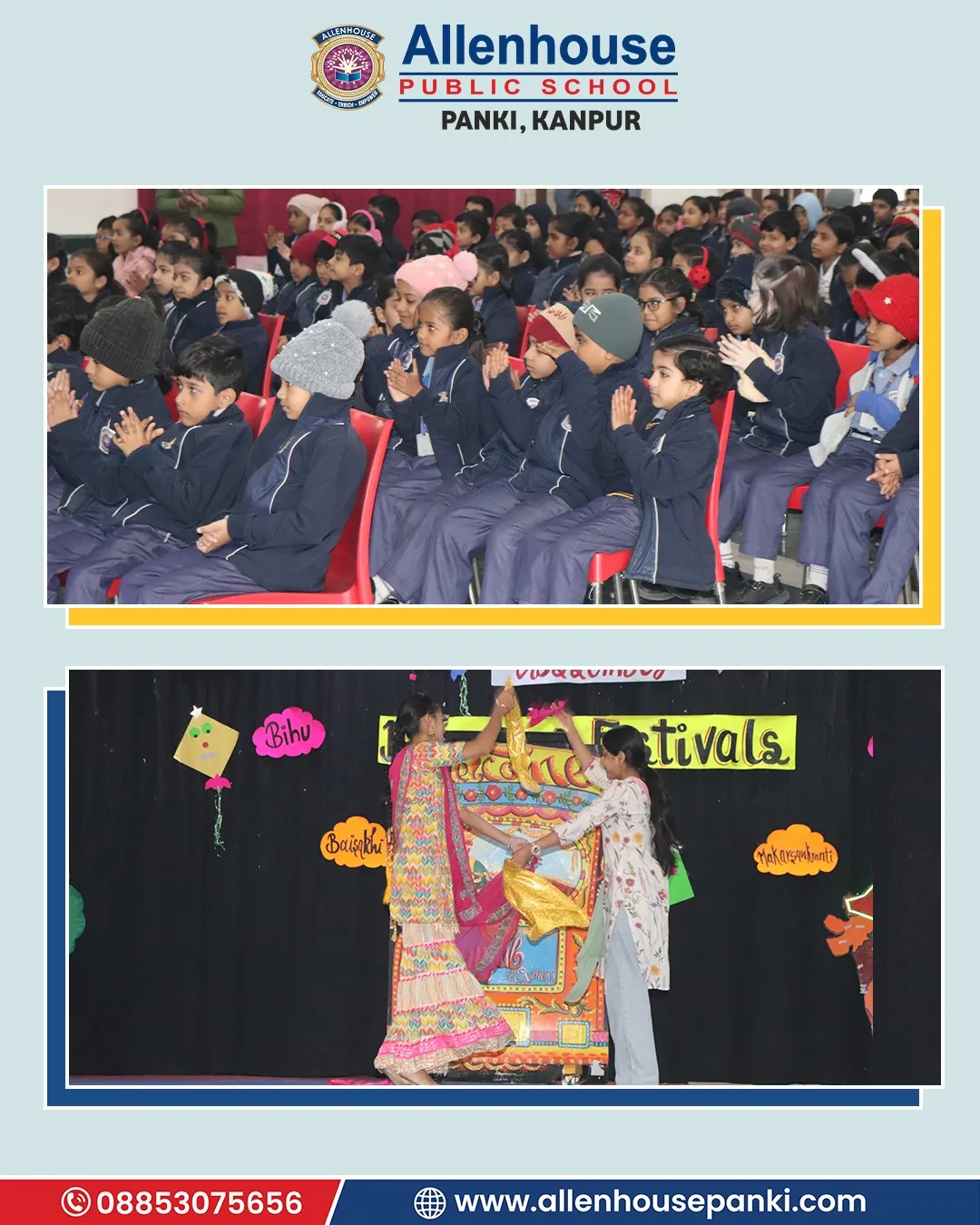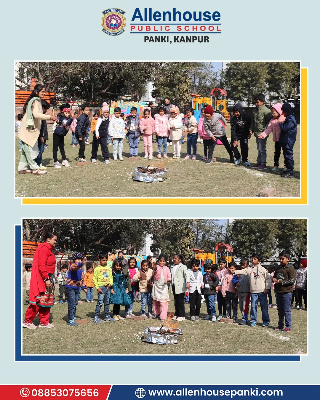 At Allenhouse Public School, Panki Lohri and Makar Sankranti festival was celebrated with zeal and wholehearted participation. The prayer, thought, and vocabulary related to the festival wove a beautiful thread of the celebration. The warmth of the gala was further enriched with hues of special dance and classical song presentation. The significance of the day was explained by the Principal, Dr. Harpreet Kaur, whose some cherished and inspiring words made the celebration even brighter.